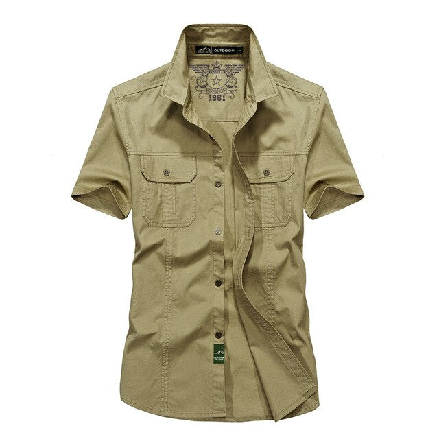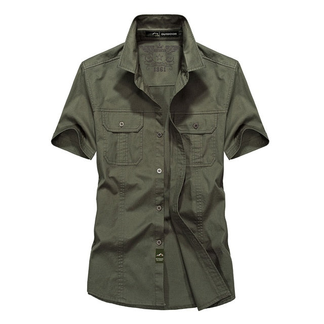 MANLI Outdoor Men's Summer Shirts Brand Short Sleeve Shirt 100% Pure Cotton jeep Army Green Clothing Fishing Trekking Hiking